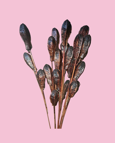 Make a bold, rustic statement with this striking floral bunch. The arrangement features slender, dark stems topped with unique, elongated pods that have a rich, textured brown finish. Each pod resembles a naturally dried seed pod, adding an organic and dramatic flair to your decor. Perfect for a tall vase, this bunch can be a standalone piece or combined with other elements to create a powerful, earthy centerpiece. It’s an ideal choice for adding a touch of nature’s raw beauty to a modern or rustic space.