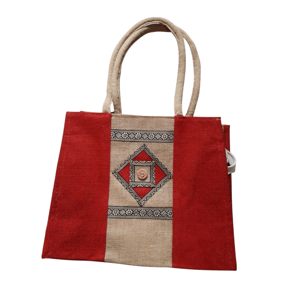 Be the first to review “Structured Jute Handbag with Red Panels and Ethnic Embroidery” Cancel reply